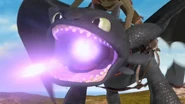 Беззубик может использовать несколько видов огня. Его фирменная атака - метание плазменных залпов и точный и невероятно мощный взрыв, способный уничтожить катапульты и даже сбить с ног Красную Смерть одним выстрелом. Он также может ослабить свои выстрелы настолько, чтобы использовать их в ненасильственных целях, и этот уровень контроля также позволяет ему отражать свои выстрелы рикошетом от других поверхностей, таких как скалы. Беззубик также может стрелять несколькими видами огня. Когда он ныряет с огромной скоростью, а затем производит точный и чрезвычайно мощный выстрел.