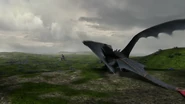 Дневная Фурия ступает на рисунок Беззубика и заставляет Беззубика сердиться. Дневная Фурия рычит в ответ, но затем Беззубик с благоговением роняет ветку изо рта, и легкая ярость выглядит удивленной. Легкая ярость обходит рисунок и подходит к Беззубику, и они пристально смотрят друг на друга. Иккинг выглядит счастливым. Затем Дневная Фурия уходит и уносится прочь, приглашая Беззубика следовать за ней. Она летает вокруг Беззубика, а он бежит по камням, не в силах взлететь самостоятельно. Дневная Фурия парит и замечает, что Иккинг находится на холме, что заставляет её сердиться и улететь. Беззубик пытается улететь вместе с ней, но он просто падает в озеро. Беззубик смотрит на свой хвост и сердито швыряет его в воду. Иккинг выглядит расстроенным и задумчивым.