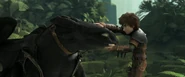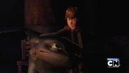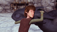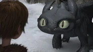 Проснувшись после сна, Беззубик заметил, что Иккинг все еще находится рядом с озером, и с любопытством посмотрел на рисунок с собой, который Иккинг выцарапывал веточкой на песке. И снова, к полному изумлению Иккинга, Беззубик продемонстрировал свой интеллект, нарисовав лабиринт из закорючек и линий в попытке подражать мальчику. Иккинг потянулся вперед, чтобы снова прикоснуться к дракону, но Беззубик откинулся назад и зарычал. Затем Иккинг держал руку и закрыл глаза в знак доверия, позволяя дракону решить, довериться мальчику или нет. Пораженный храбростью Иккинга, Беззубик наклонил голову вперед и на несколько секунд нежно коснулся мордой руки Иккинга, а затем снова улетел.