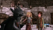 Когда на Олухе начинаются приготовления к Сноглтогу, Беззубик будит Иккинга, запрыгнув на его крышу. Они вдвоем отправляются в полет и пробуют новый прием, но Иккинг теряет свой шлем. Мальчик и Дракон возвращаются домой, где им доносят о том, что все драконы Олуха улетели. Беззубик, похоже, хочет последовать за ними, заставляя Иккинга чувствовать себя виноватым из-за того, что Беззубик не может летать самостоятельно. Поэтому он в конечном итоге строит для Беззубика специальный протез, который позволяет ему летать независимо. Но, отдав своему дракону новый протез хвостового плавника, Беззубик уходит так же быстро, как и другие драконы.