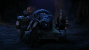 В эпизоде «Сквозь снежные капканы» у Беззубика был более легкий комплект брони, сделанный из железа Громмеля.