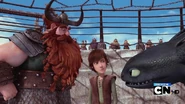 Иккинг, расстроенный тем, что Беззубик, по-видимому, бросил его, позже обнаруживает, что другие драконы покинули Олух, чтобы отложить яйца и дождаться вылупления своих детенышей. Хотя он не может увидеть Беззубика на острове, куда они отправились, он возвращает драконов домой, когда Олух наконец празднует Сноглтог. Он спрашивает, куда мог пойти Беззубик, пока не возвращается Ночная Фурия, пытаясь незаметно пробраться в зал. Его быстро замечают, и он радостно подбегает к своему человеку, показывая покрытый слюной шлем в качестве подарка. Понимая, что Беззубик все это время уходил, чтобы попытаться найти потерянный шлем, Иккинг обнимает своего дракона в знак благодарности.