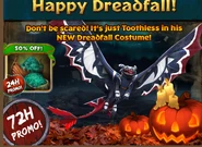 Дредфольский Беззубик появляется в игре как пятизвёздочный дракон синей фракции. Он был выпущен к Хеллоуину, в игре называемому Дредфол (англ. Dreadfall).
