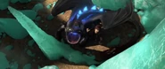 Лед внезапно рушится, и появляется Беззубик, не только защитивший Иккинга, но и светящийся синим цветом чистой энергии в качестве демонстрации доминирования. Разгневанный покушением на жизнь Иккинга, Беззубик впоследствии бросает вызов Смутьяну напрямую, разрушая его власть над другими драконами с помощью беспощадных огненных атак и объединяя их, чтобы помочь ему.