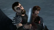 Иккинг замечает таинственный столб дыма, поднимающийся вдалеке, и Беззубик летит с ним к источникам дыма вместе с Астрид и Громгильдой. Там они сталкиваются с Эретом и его охотниками на драконов, которым удается сбежать из своего разрушенного форта с новостями о таинственном воре-драконе и печально известном Драго Блудвисте. Хотя Стоик приказывает запереть всех драконов Олуха, когда узнает, что идет Драго, Беззубик и Иккинг дважды улетают, несмотря на то, что он говорит им, что Драго нельзя урезонить.