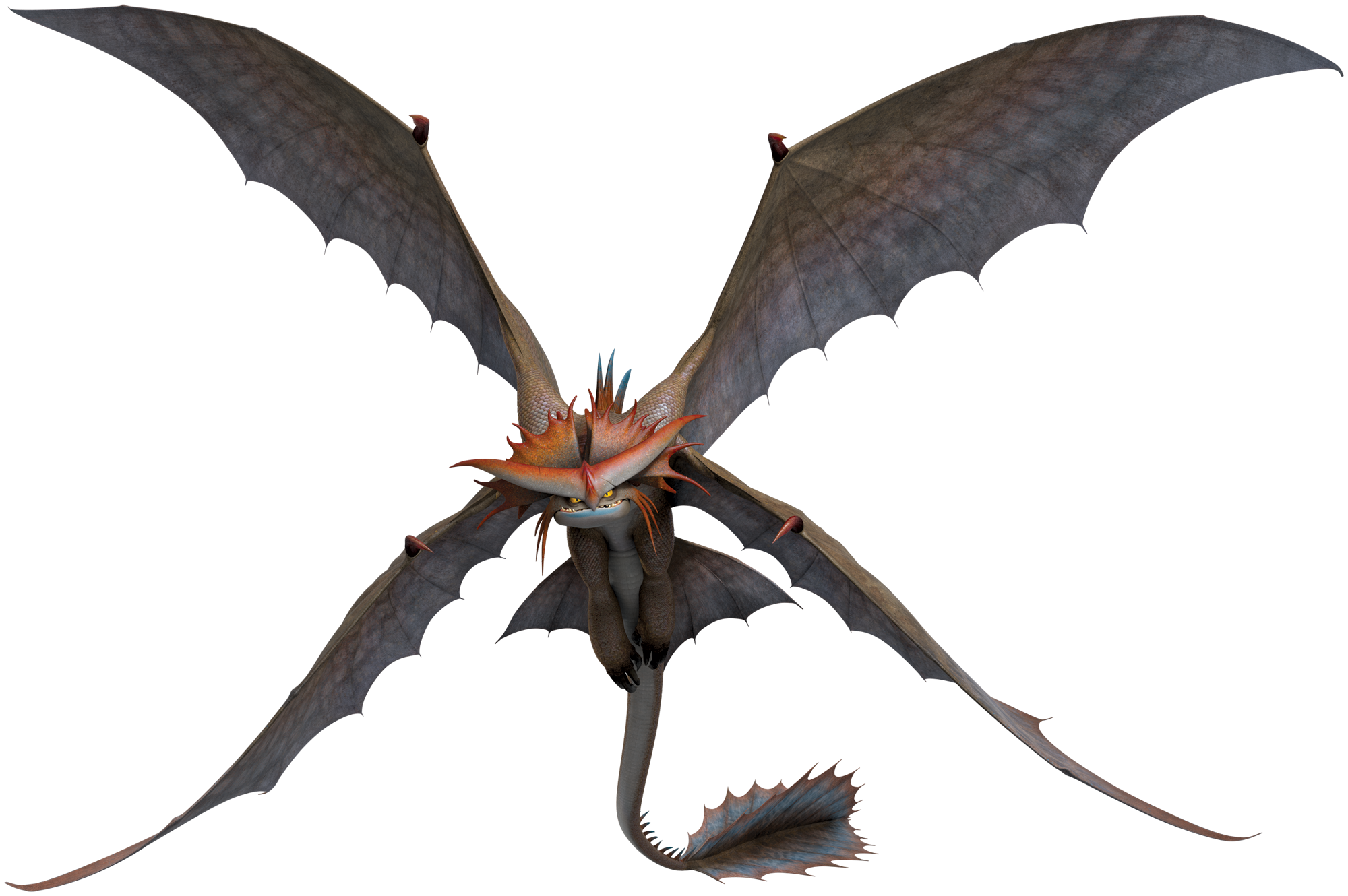 | « | Похожий на сову Грозокрыл был избранным спутником Валки для полетов и спасения других драконов в течение долгих двадцати лет. Гордость, уверенность и большой размер Грозокрыла заставляют его считать себя главным драконом на Драконьей горе Валки, уступая только Великому Смутьяну, который является королем всех драконов в гнезде. Благодаря двадцатилетнему совместному опыту Грозокрыл и Валка используют бессловесные манёвры во время полета. В то время как другим наездникам драконов нужно выкрикивать команды, чтобы повернуть или выстрелить залп, Грозокрыл инстинктивно знает, когда Валка хочет, чтобы он двигался или атаковал, добавляя свои невероятные действия к их мастерству в бою. Как и все Шторморезы, Грозокрыл имеет вторую пару скрытых крыльев. Когда все четыре крыла развернуты в форме буквы X, в небе нет дракона более маневренного и точного, чем Грозокрыл. Хотя на первый взгляд они выглядят устрашающе, передние когти Грозокрыла на самом деле могут быть довольно ловкими и нежными, когда ситуация требует мастерства вместо дикости. Эти острые крючковатые "клешни" на кончиках крыльев Грозокрыла достаточно ловки, чтобы осторожно взломать замок драконьей ловушки — или достаточно сильны, чтобы разорвать одну из боевых машин Драго! | » |