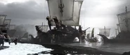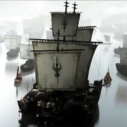 Другие корабли в его флоте имеют другие конструкции, такие как похожая голова дракона со стрелами или катапультирующимися камнями вокруг, или тот же логотип, если смотреть со стороны.