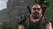 Высокий, крепко сложенный мужчина. Носит безрукавку, вероятно, сделанную из драконьей кожи. На поясе небольшой череп дракона, а нарукавники и правый шипастый наплечник представляют собой черепашьи панцири.