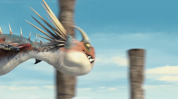 The scene starts with two wild Deadly Nadders resting after a long day's flight, but are suddenly interrupted when they get tagged with yellow paint. Hiccup and Astrid are actually tagging them so they know which dragons belong to a corresponding island; the dragons who get tagged yellow live on Sorrow Island. Astrid is able to tag a few Deadly Nadders and challenges Hiccup to join in. Astrid misses one, Hiccup suddenly joins in blazing speed and in seconds catches up to the missed Deadly Nadder, Hiccup corners in front of the Deadly Nadder and transforms his shield to a crossbow and uses the paint as his ammo, fires and finally tags the Deadly Nadder in a clean shot. Astrid then admittedly compliments Hiccup's complex shield. Hiccup heads out to see the Twins' progress at Crescent Island, while Astrid sarcastically ensures that they're doing fine.