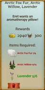 Another Farm Job implicates soothing qualities for humans as well. This Farm Job asks for Arctic Fox fur, Arctic Willow, and Lavender to make an aromatherapy pillow for Eret.