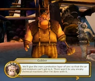 During the quest, "Back in the Saddle Again, Part 1", Fishlegs and Meatlug crash land in the Wilderness on the School of Dragons Island while attempting to help an injured Gronckle due to a broken saddle. After collecting the rusted saddle rings, Fishlegs asks the player to bring the rings to Gobber in order to prevent them from rusting ever again. To do this, after cleaning off the rust layer, Gobber has the player place the rings in the zinc bath and has the player's dragon light the zinc bath on fire. With the rings coated in a layer of protective zinc, Gobber tells the player to take the galvanized rings back to Fishlegs so that Meatlug's saddle can be repaired.