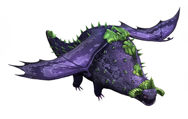Big Snuff is mostly purple, with light green horns and spikes and a much darker pattern on its wings and back. Its eyes are light purple.