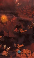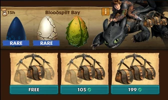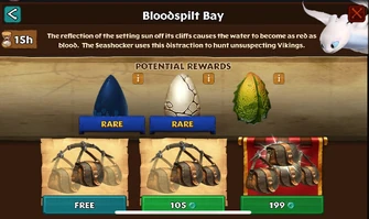 As seen in Dragons: Titan Uprising, Bloodspilt Bay is a volcanic area with at least three small land masses within a sea. The islands are mostly barren and rocky, but have an occasional conifer tree covered with white ash. There is a small volcanic vent on the bay's West side. The area has a prolonged occupation by the forces of the Dragonroot Company, and later becomes even more darkened and covered in a red haze.