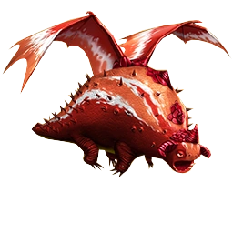 Boarcharger is mostly vivid red, with orange and white stripes on its back and wings. Its horns are a shiny crimson color.