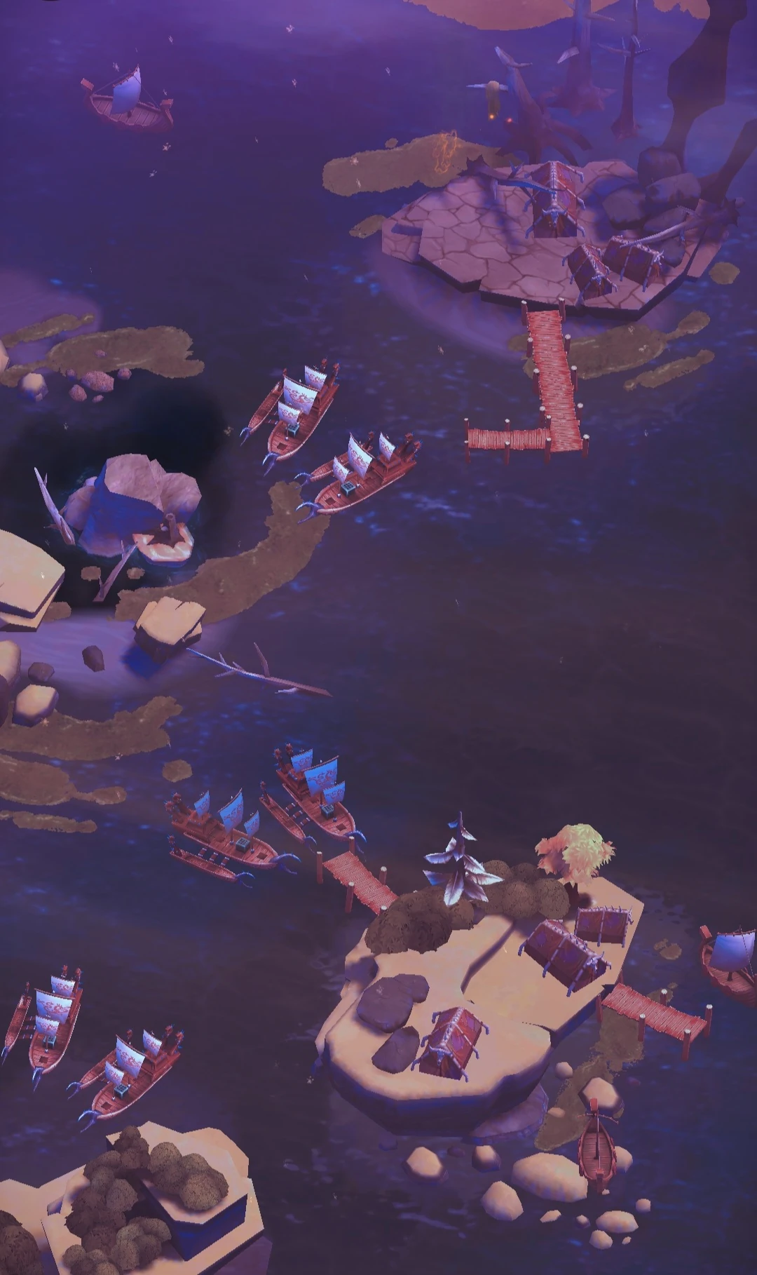 Bog of the Loud Whisper is a waterlogged area with points of higher elevation. These un-submerged areas are rocky spires, but there are also some flat areas.