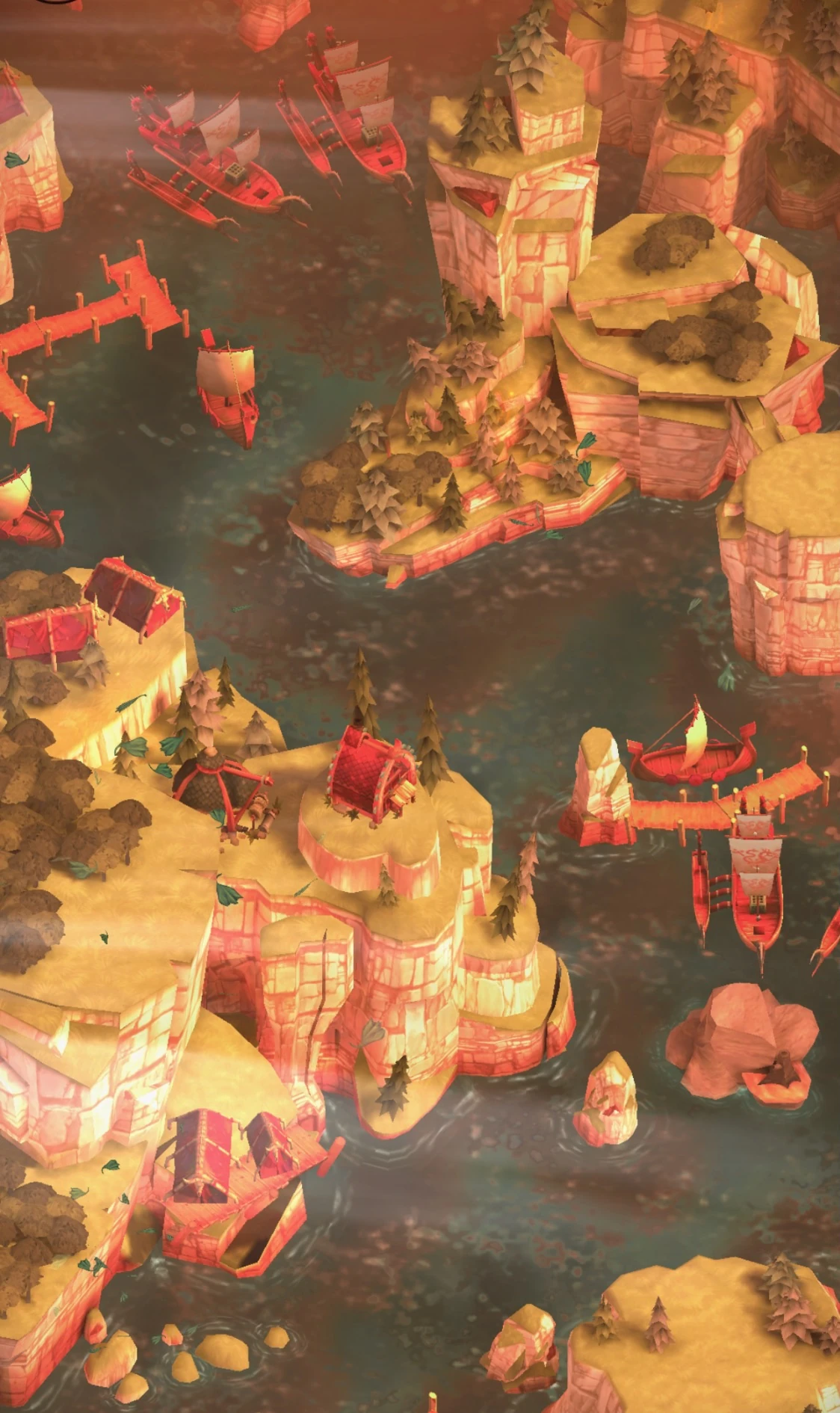 Bold's Course is a sparsely forested area with evergreen and deciduous trees, as well as grasses. The area consists of three main rocky land masses with water ways deep enough for ship to pass through In Dragons: Titan Uprising, the Dragonroot Company has taken over the area, building camps, docks for their ships, and other structures. There is a red haze enveloping Bold's Course as well.