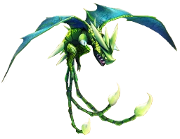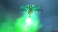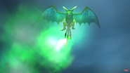 The Champion Triple Stryke is a Titan Wing Triple Stryke, noted for its light green body, blue and cyan wings, and white spikes. It uniquely shoots acid from its mouth and its three tails.