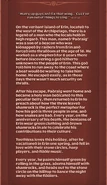 | “ | After his escape, Padraig went home and became a holy man dedicated to this peculiar deity, then returned to Erin to preach about how the three leaves shamrock is the perfect metaphor for how his god is three people in one, ... the denizens of Erin wear green clothing and drown shamrocks in ale. | ” |