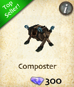 The composter can be bought from the shop for 300 gems or 3000 coins. Each use of the composter requires five spoiled crops and yields five lug worm bait after two minutes.