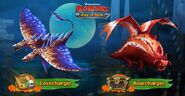 Deadly Nadder : Ambered Nadder • Bork Week Nadders • Brush Nadder • Defender Deadly Nadder • Edge Nadder • Fireshrike • Flystorm • Hardychomper • Helsgate Nadder • Kingstail • Lethal Lancebeak • Nimble Nadder • Pincher • Scardian • Seedling Stormpest • Skyblade • Springshedder • Steelspike • Steeltrap • Stormfly • Stormfly's Mate • Stormfly's Offspring • Sunflower • Vaynglory • Vexclaw