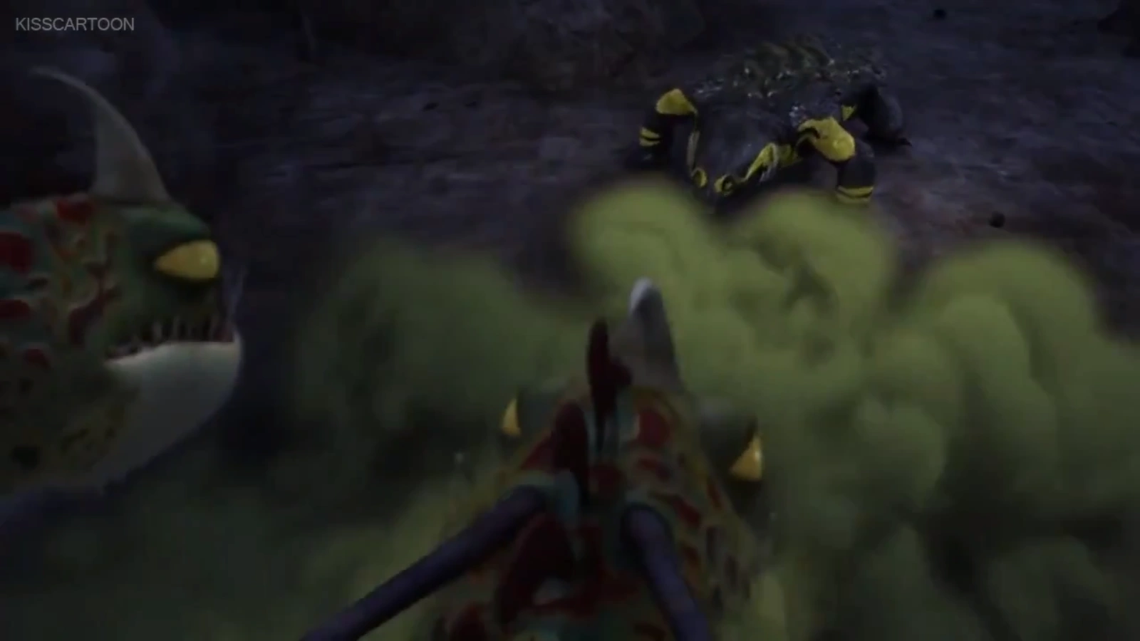 Going deeper into the caverns, Snotlout starts having second thoughts about his idea, before being rebuffed by Hookfang as they catch up to the Queen. The Riders try to escape the caverns and used Toothless echolocation ability to navigate. They come across the Cavern Crasher, but they fail to catch the creature with bolas, and it retaliates by spraying flammable mucus all over them. The Twins try to go for the beast, but the flammable mucus they're covered with explodes when they try to blow up the dragon, causing the Twins and their dragon to crash. They try to avoid the beast's fire blasts as they're even more vulnerable with the mucus covering them.