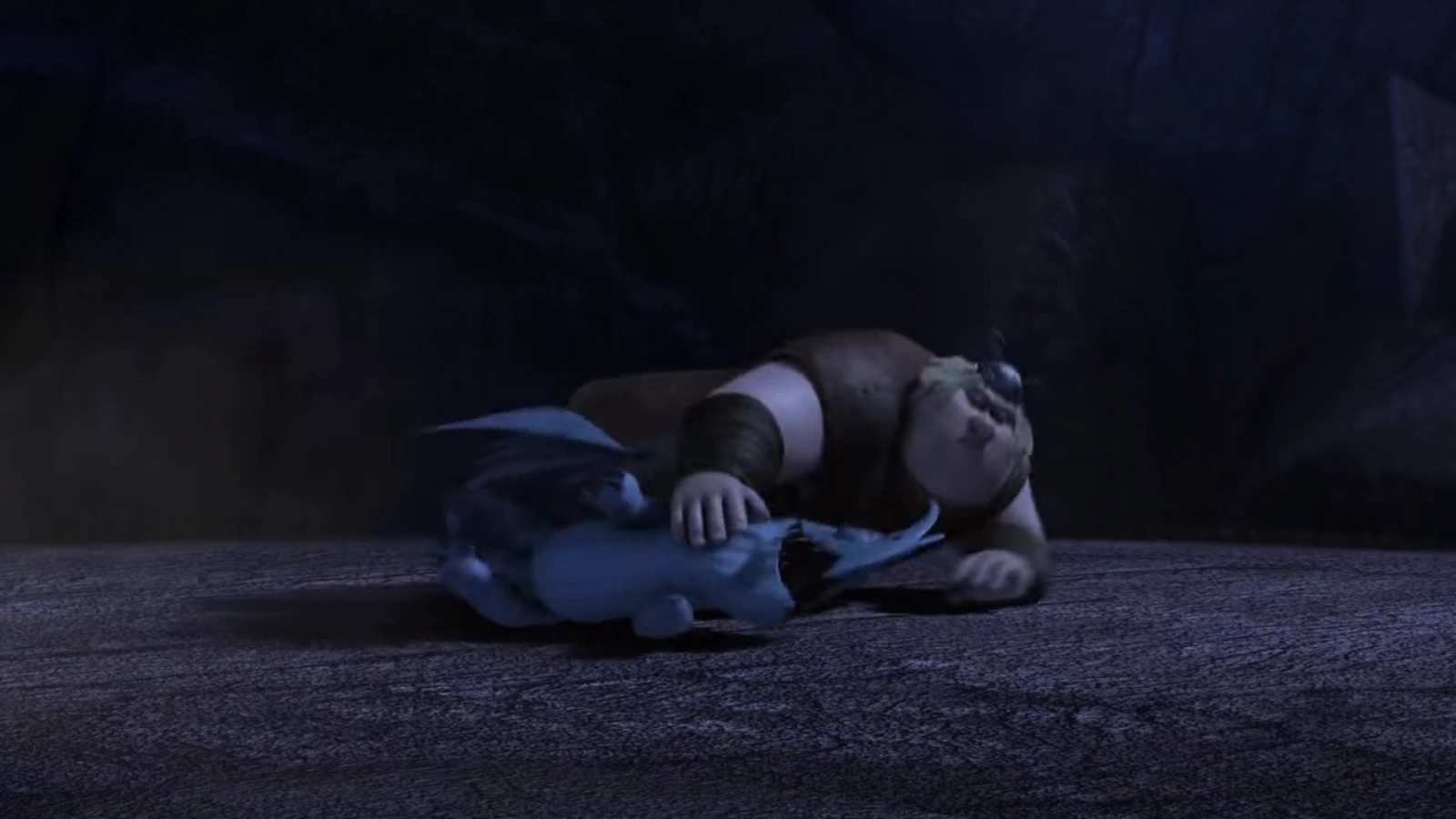 Using the cover of night to their advantage, the Riders are able to interrupt the Hunters looking for Fishlegs. Meanwhile, Fishlegs manages to reach the end of the tunnels but his escape is too high for him to reach, and Darkvarg is unable to fly Fishlegs to the exit on his own. But time has run out and the Hunters have arrived, knocking Darkvarg off in one swoop. Fishlegs tries to defend himself but fails and he is forced to his knees as one Hunter prepares to chop his head off. Meatlug hears her Rider's screams and she quickly leads the other Riders in to rescue him, driving the Hunters away. Fishlegs and Meatlug reunite and prepare to fly off, while gratefully thanking Darkvarg.