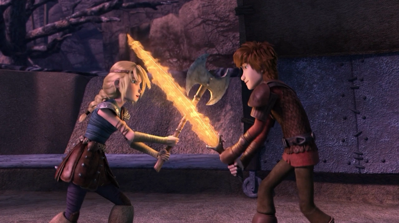 While trying to find Hiccup, Fishlegs stumbles upon Hiccup's unfinished secret project covered in tarp, he is tempted to take a peek but it's interrupted when Snotlout asks why Fishlegs is inside Hiccup's hut. Fishlegs explains that Johann has arrived and has requested to see Hiccup, but Snotlout has no clue where he is and says that Hiccup probably doesn't care about Johann because of his growing relationship with Astrid, and that they've begun to spend too much time together alone. They eventually find him at the arena, having a friendly duel with Astrid. Fishlegs informs Hiccup about Johann, and he quickly leaves, along with Astrid, once Johann's name is mentioned. The Riders express their annoyance but are ignored as the couple head to Johann.