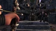 In "Saving Shattermaster", The Riders are summoned to Caldera Cay, where Mala sets up the Trials for Snotlout. At first, Snotlout tries to flee, but after being egged on by the Twins who expect him to fail, he decides to compete to prove he can. Much to the surprise of the Twins, Astrid, and Fishlegs, Snotlout shows bravery and completes the Pool of Valor and the Maze of Poisonous Eels. He even had to save Fishlegs, who fell into the Maze from Giant Eels. By the third trial, however, he is sabotaged and just misses taking an arrow for the Queen, thus failing the Trials. He is, however, thrown a feast and is King for a Day for his effort.