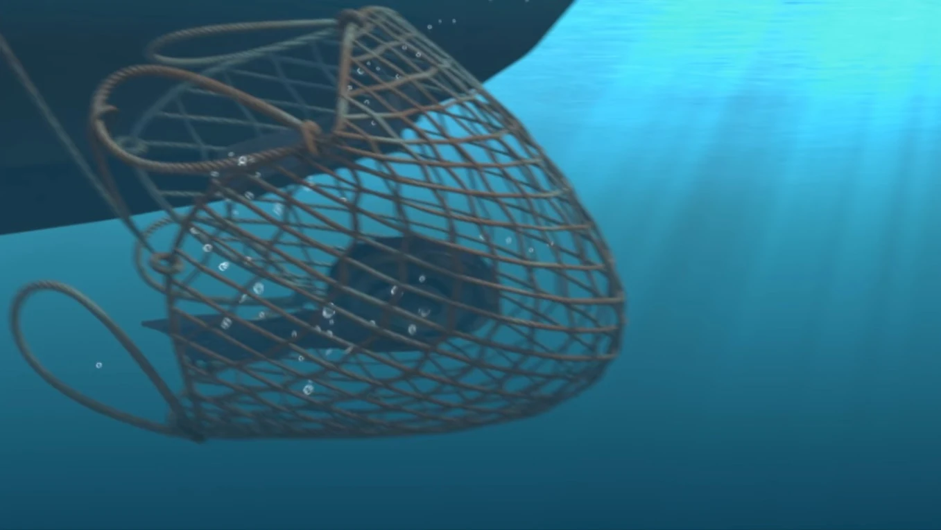 Suddenly, Fathom and Gill start attacking the boat in an attempt to sink it. Dak stops them and tells them that they should focus on stopping the trash instead of attacking Elbone. Dak then comes up with the idea of using fishing nets to collect all the litter in a short time. With the help of Summer, Fathom, and Gill, Dak moves Elbone's boat in front of the coming trash and throws multiple nets in the water. Helped by Elbone, Dak manages to collect all but one piece of garbage. Dak jumps on Summer, who flies toward the last piece, and the boy grabs it just before it could fall in the whirlpool.
