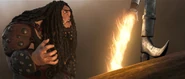 Drago is shown to wield a long metal bullhook. Much like Valka's Staff, Drago uses it as a means of controlling the dragons (or more specifically, his Bewilderbeast), swinging it over his head and roaring loudly, alerting the Bewilderbeast of his request. It is possible that this technique operates out of psychological conditioning, as Drago uses it to beat a captured Hookfang into submission, and forces him to stay on the ground as he placed his foot on the dragon's snout.