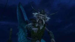 Mildew leads the village to near revolt when Toothless appears to be attracting a vicious lightning storm, claiming that Thor is punishing the village for taking him in and that the Night Fury must be banished.