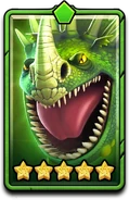 Eldritch Deathnettle is bright green, with yellow bumps. She has dark green and yellow circles around her tail and bright yellow circles on her wings. Her spikes and horns are dirty yellow, while her claws are green. Her eyes are bright yellow.