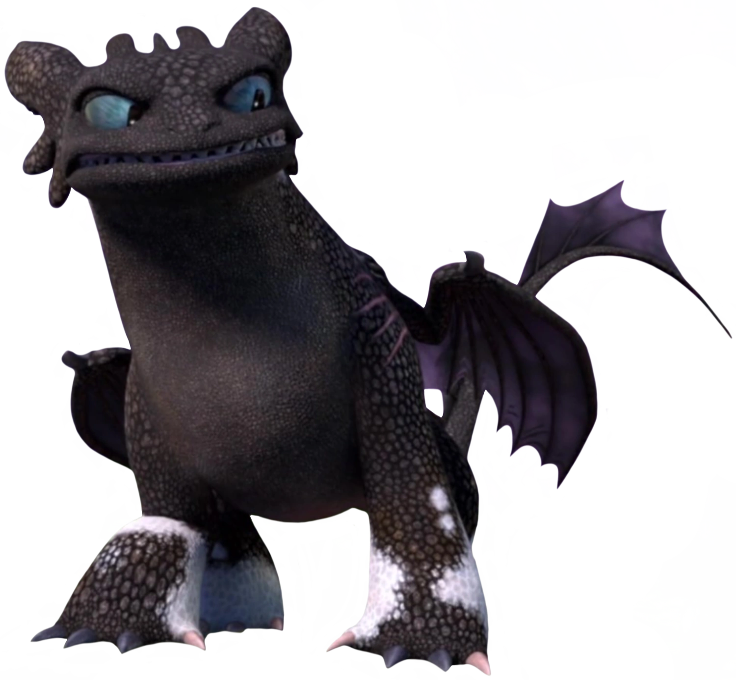 Father Night Light, much like Thunder, Toothless, and the Elder, bears a striking resemblance in terms of appearance. He is predominantly black, akin to a Night Light, with white patches adorning his feet and two white spots just above them. While he closely resembles a Night Fury, Father Night Light exhibits a more robust and muscular physique, in contrast to the sleeker build typically associated with Night Furies. Notably, his wings are narrower, similar to Thunder's, extending only to his mid-side instead of reaching the base of the tail fins as seen in Night Furies. These wings feature a solitary claw-like spike on each, covered in scales. His back and spines are white, along with white spots along the sides of his body. At the base of his tail, where it meets his body, Father Night Light possesses a pair of tail fins, but instead of the conventional flukes found in Furies, he boasts a single webbed sail at the tip. Furthermore, he bears a scar on his left shoulder. In contrast to his son and mate, Father Night Light's scales exhibit a rough texture when touched.