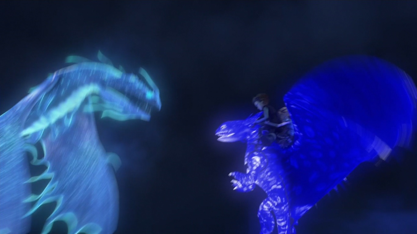 - There's a scene where Toothless, Meatlug, and Stormfly glow brighter when next to each other. The Riders may have learned this since the previous Fireworm encounter.