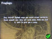 | “ | Hey, Astrid! Piglegs says you want armor patterns. Some seagull just flew off with mine. Help me find it, and I'll give you a copy. | ” |