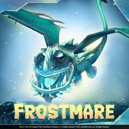 The Frostmare is a quadrupedal dragon of heavy build, with a large head and long tail. Its entire body is covered in icicle-like spikes, inherited from its Groncicle parent. It also has three frills on its neck. This dragon is known for its icy blue glow, reminiscent of a Flightmare egg.