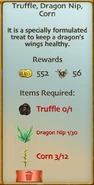 In the Franchise, truffles, corn, and Dragon Nip are asked for in a Farm Job to make a "specially formulated treat to keep a dragon's wings healthy." This implies dragons eat truffles, and can also be used medicinally, at least in School of Dragons. Fungi is also used medicinally in real life in herbal medicine, but more notably as a source of antibiotics to fight bacterial diseases in humans and animals.