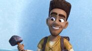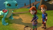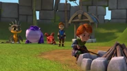 Aggro staying behind to keep the fire going while others get fish and Elbone telling Aggro about his new business idea[]