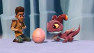 Examing and freeing the egg and Elbone and Aggro getting into trouble[]