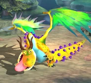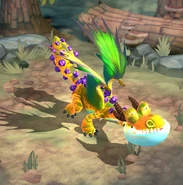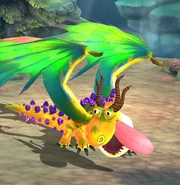 Gladgut loves having his belly rubbed so much, he doesn't distinguish between friend and enemy Vikings. Many have been the surprised hunter or trapper who have seen this fiery Abomibumble break past their defenses, only to roll over and expect them to pet him! As sunny in personality as he is in appearance, Gladgut enjoys lounging about in on warm days (on which he sleeps 10 or so hours), always with his big belly up and ready for a rub from a friendly passerby!