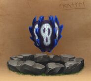 Gloomshadow is dark black-purple with a pale blue belly. Its wings have a lot of spots, dark spots on light color and light spots on dark color. Its horns, spines and claws are sea blue. Its eyes are red. Gloomshadow's egg has markings reminiscent of the face of a ghost.