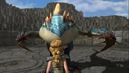 This video featured Astrid battling a Deadly Nadder, who is presumably Stormfly. She learns about the Nadder's blind spot, but get blown away by fire for failing to stay in the blind spot.
