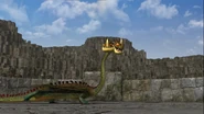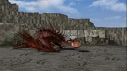Snotlout enters the arena and grabs the mouth of a Montrous Nightmare and holds it shut. Though the dragon cannot breath fire with its mouth closed, it smashes Snotlout into the ground and bites him just as the video ends.
