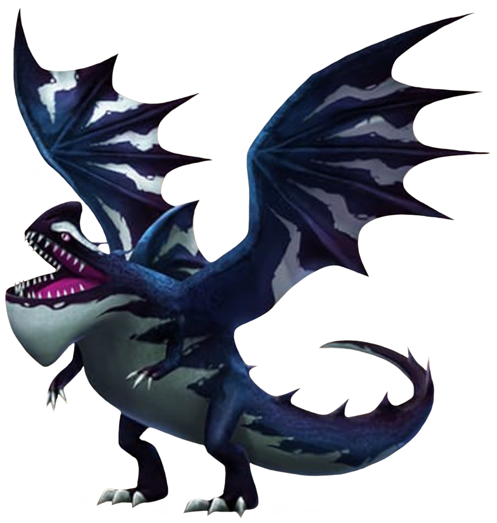 Grapknell dragons are dark blue with gray underbellies and gray stripes on their wings and sails. They have bright yellow eyes.