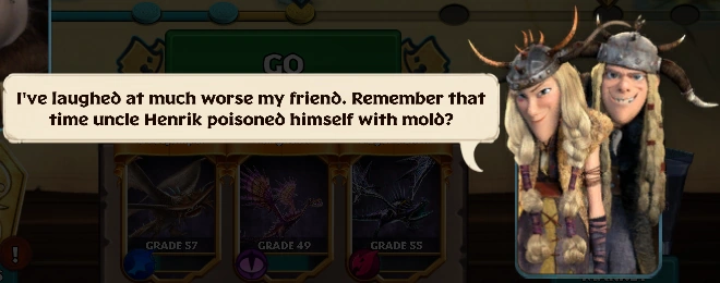 Henrik is mentioned by Tuffnut in "Buffalord Soldier" after he talks about his experience with moldy bread. He uses the title crazy to talk about his uncle. Ruffnut tells Tuffnut that Uncle Henrik is indeed crazy, going so far as to state that Uncle Henrik reportedly married his own beard.