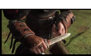 In the film, Hiccup only uses the dagger once to sharpen his pencil before drawing Itchy Armpit on his map. Throughout the rest of the film it's seen in its holster on his right arm.