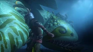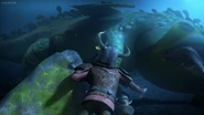 Hiccup wore a diving helmet in Race to the Edge, Season 4, in the episode "Dire Straits". He uses it to dive to the sea floor to free the Submaripper by using Changewing acid to melt the chains that bound it. This helmet allowed Hiccup to breathe underwater for an extended period of time. It was developed alongside the Diving Bell.