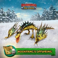 Hookfang's Offspring is an individual introduced in the game, Dragons: Rise of Berk , but may refer to any dragon children Hookfang may have had, such as in the movie short, Gift of the Night Fury .