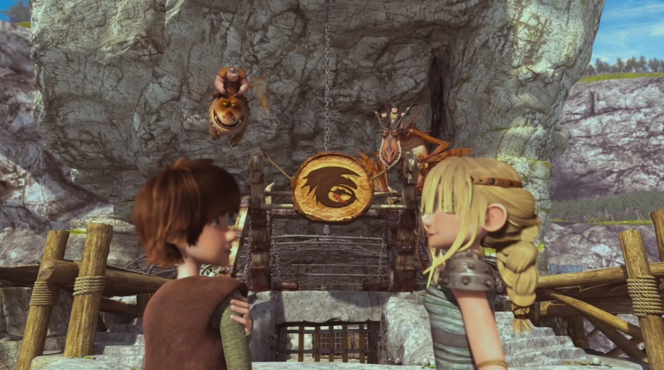 Stoick then officially gifts them the dragon training arena and releases their dragons from captivity. An annoyed Mildew walks away in a huff, vowing to "get those dragons yet". Stoick tells Hiccup that now, he just has to train the dragons, and his son replies that it won't be a problem as he has Toothless, adding that he also has his friends, the Riders, after Astrid makes him take note.