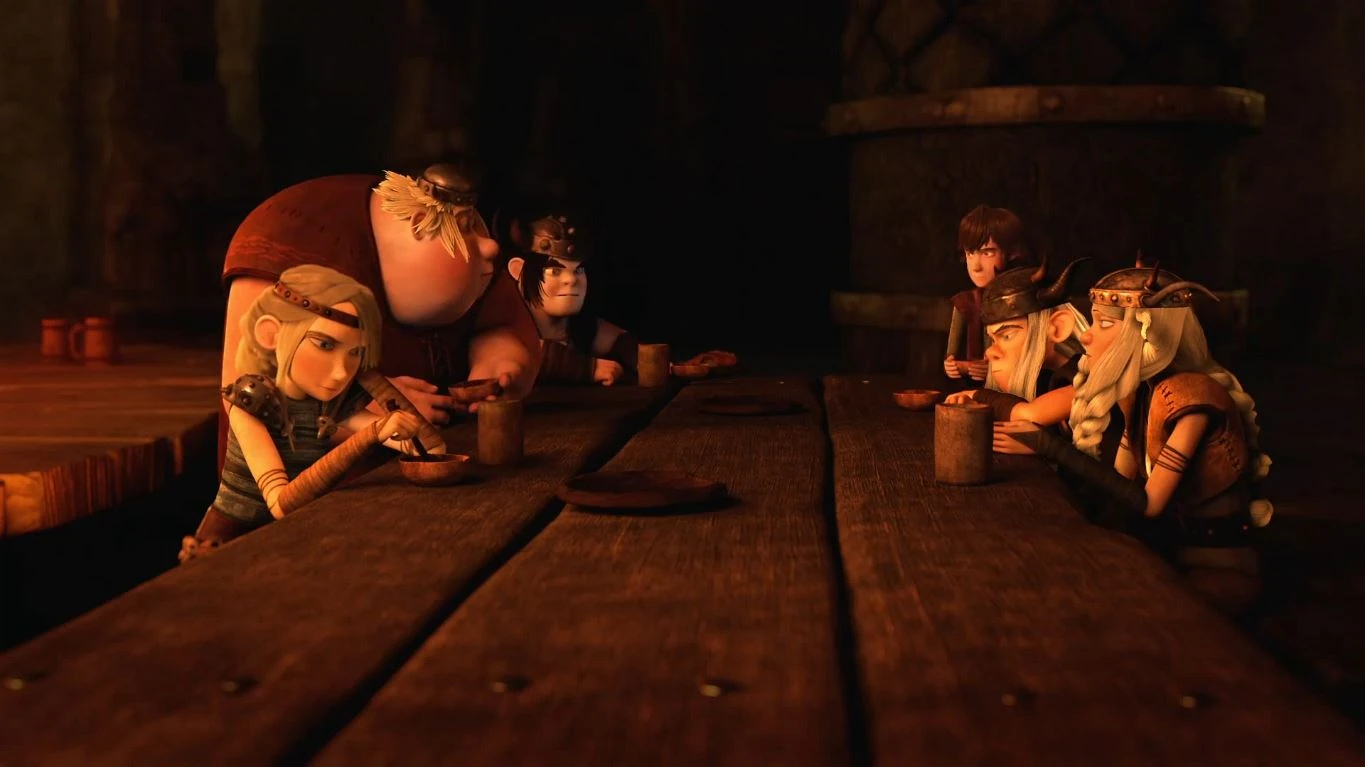 Later in the evening, the Riders dine together at the Great Hall, upset that their dragons are going to be sent away. They sorrowfully recall their good moments with them before Astrid leads them away to get the caging done with. Hiccup is still reluctant, desperate not to have to let go of Toothless, his best friend. Mildew, showing up like a bad penny, rather gleefully says his goodbyes to Toothless, and ribs Hiccup, saying that his mistake was believing dragons could be trained. He adds that dragons will do what they do because it is in their nature, and nature always wins. Observing Toothless re-ignite a fireplace that gets put out when the Hall's door is opened, and a Viking expressing her thanks to the dragon, Hiccup is suddenly inspired by what Mildew said. He rushes to the arena where the Riders are saying their goodbyes and apologies.
